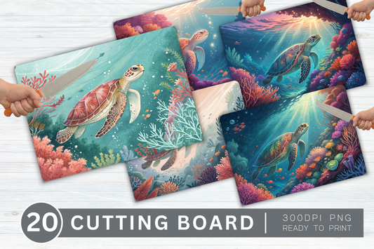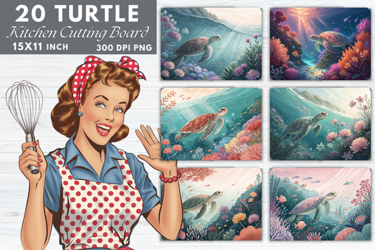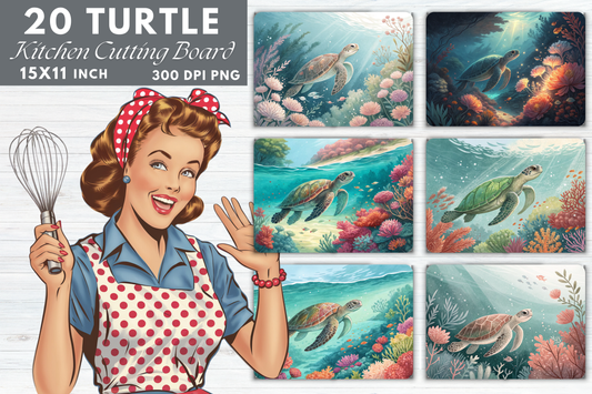20 Turtle Kitchen Cutting Board Design Sublimation Bundle