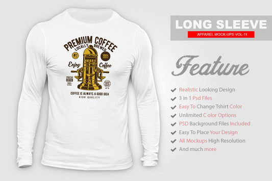 3 Editable Long Sleeve T-Shirt Mockup - Apparel Mock-Ups Bundle