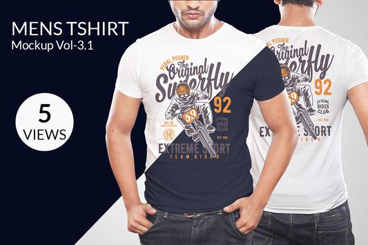 5 Editable Men's Crew Neck T-Shirt Mock-Ups PSD Bundle