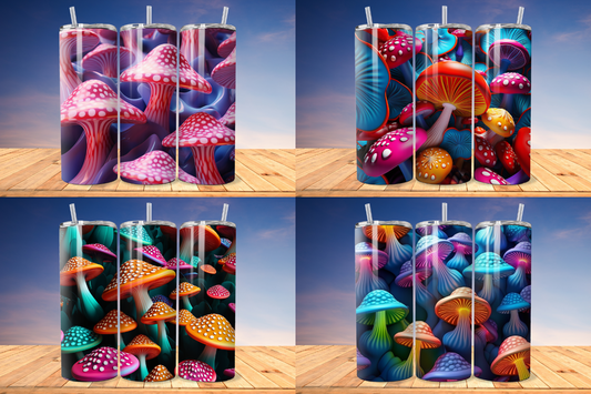 3D Mushroom Seamless Pattern Tumbler Bundle