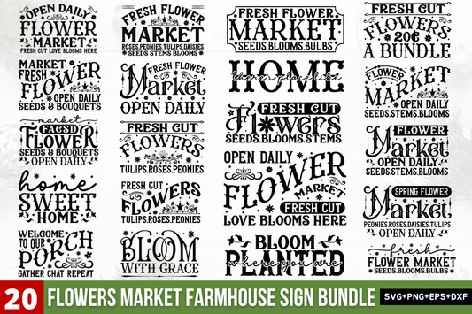 Flowers Market Farmhouse Sign Svg Bundle